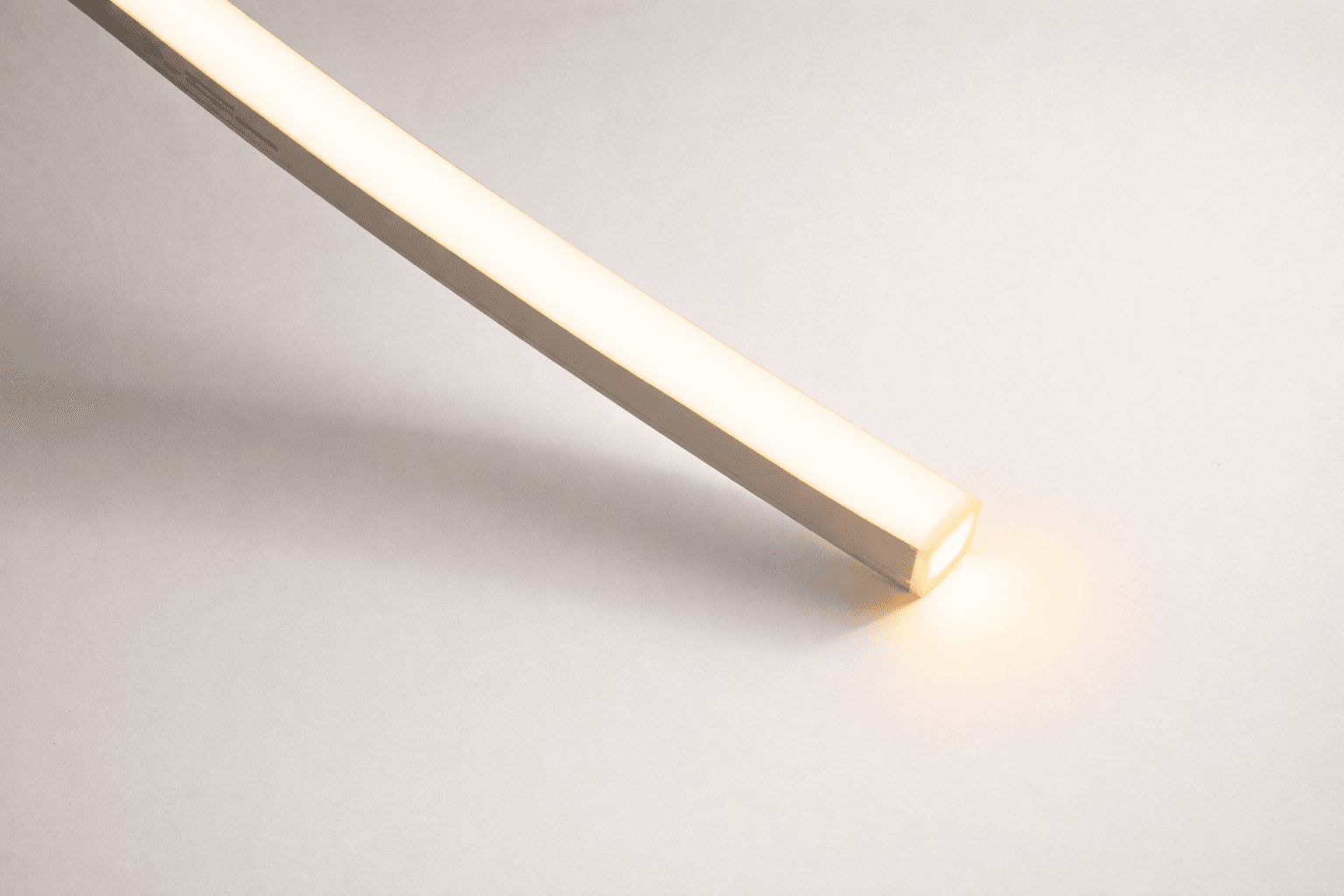 Die Konstruktion von Neon Flex ermöglicht das Biegen in zwei Ebenen mit einem Radius von 100 mm oder 140 mm, was das Erstellen komplexer Lichtformen erleichtert.