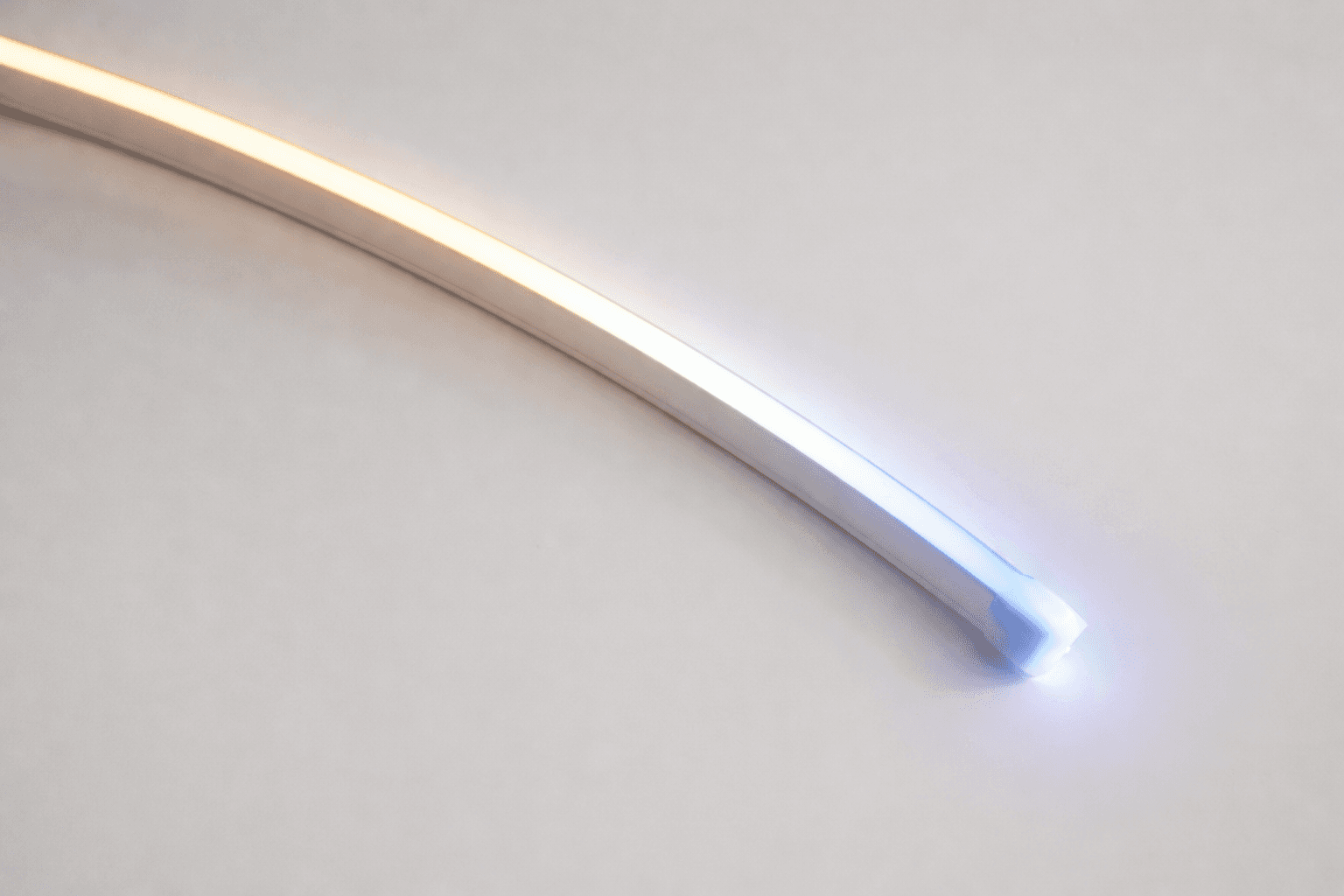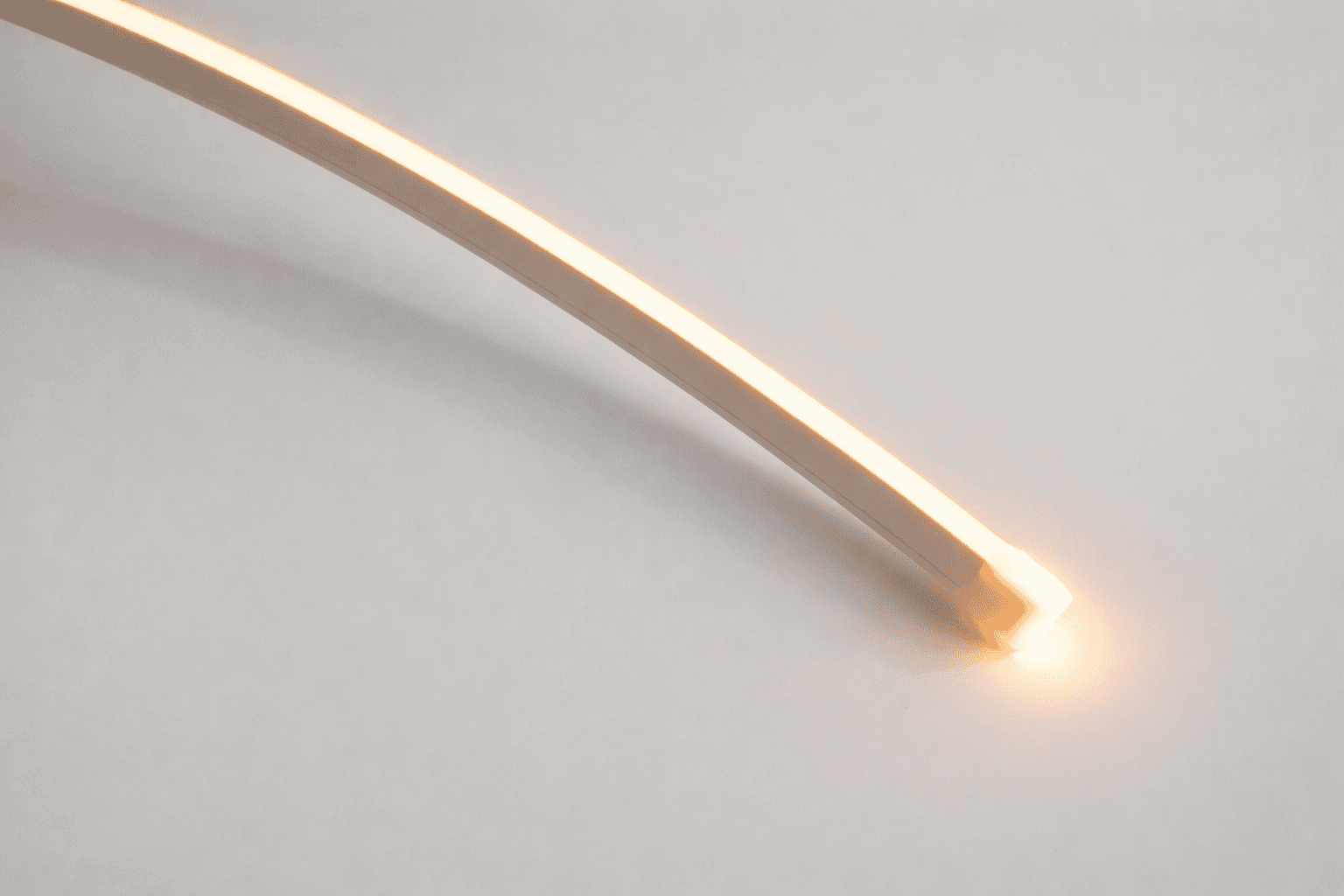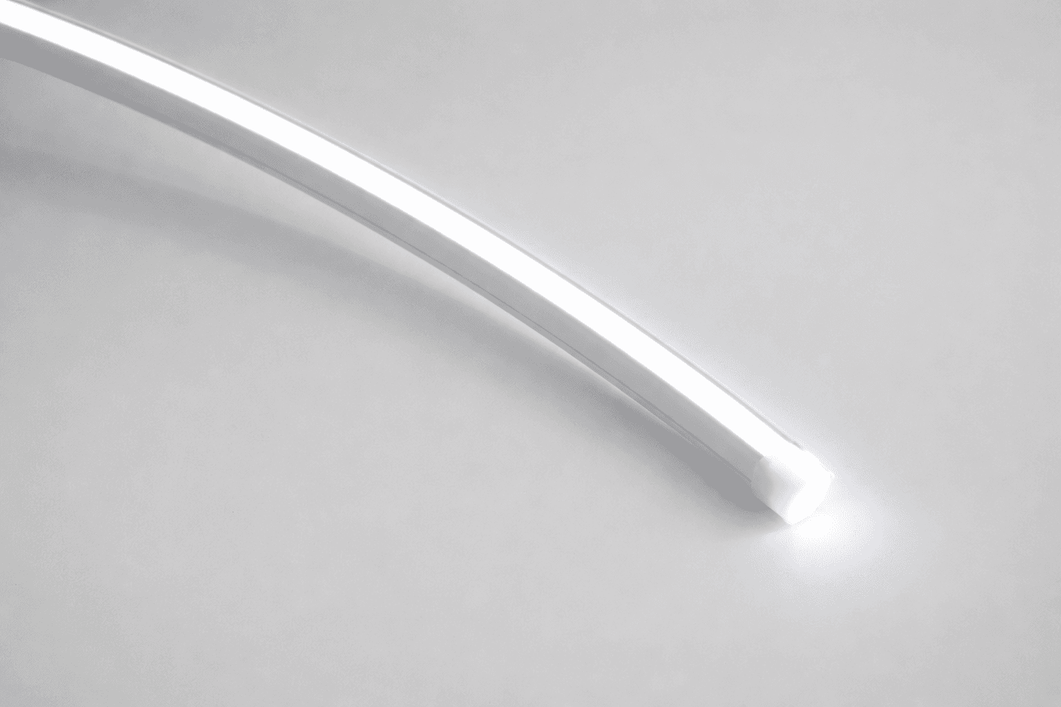 Der schlanke Neon Flex mit horizontaler Biegerichtung zur Erstellung subtiler Konturen und dekorativer Lichtinstallationen.
