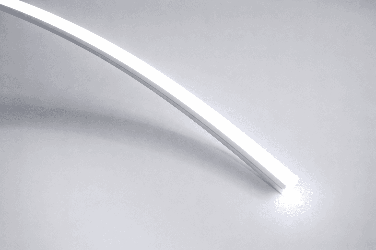 Der schlanke Neon Flex mit horizontaler Biegerichtung zur Erstellung subtiler Konturen und dekorativer Lichtinstallationen.