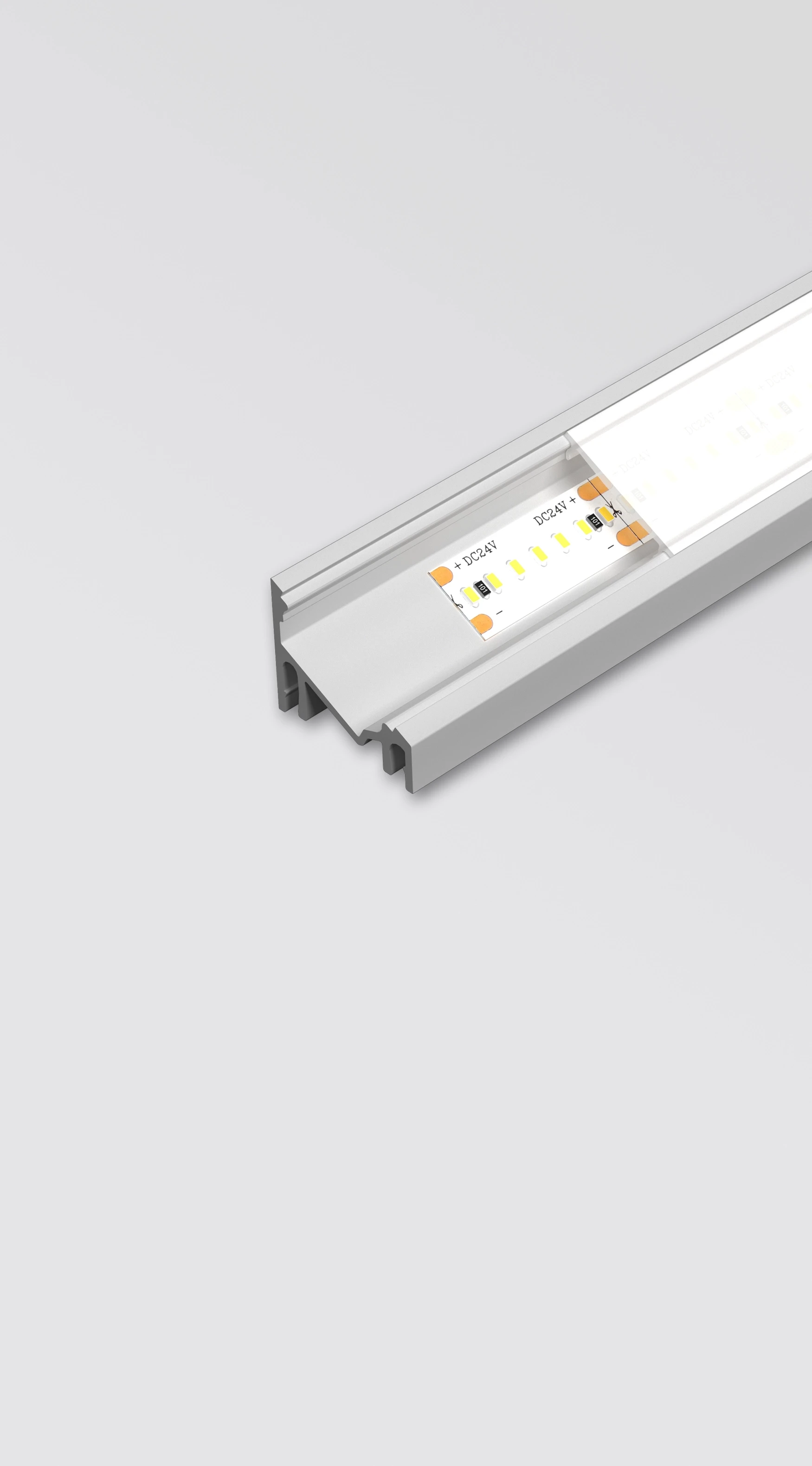 LED profile designed for corner installation. Thanks to its asymmetrical design, it allows for light emission at angles of 30° or 60°, depending on the installation orientation.