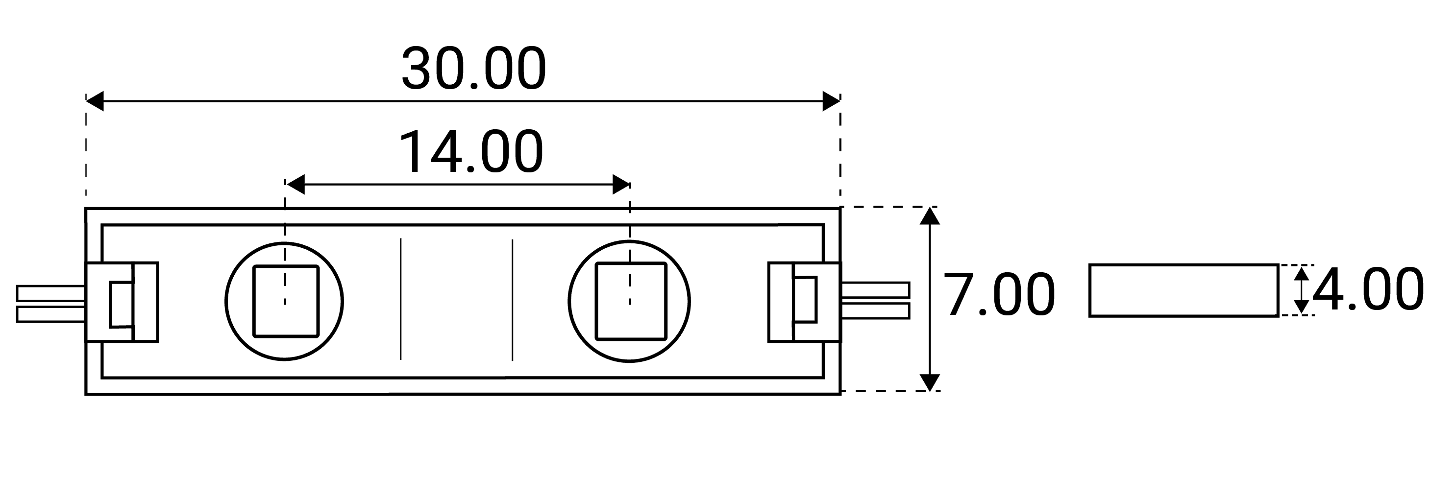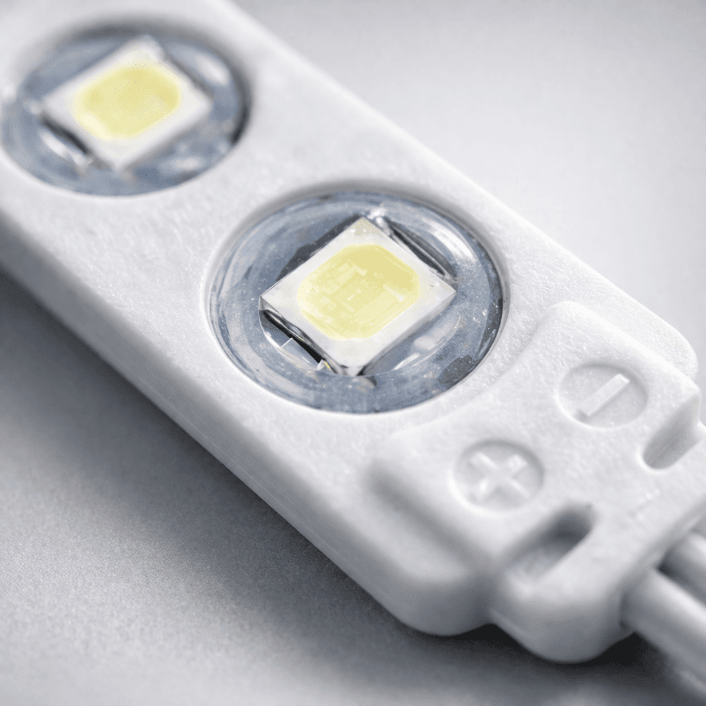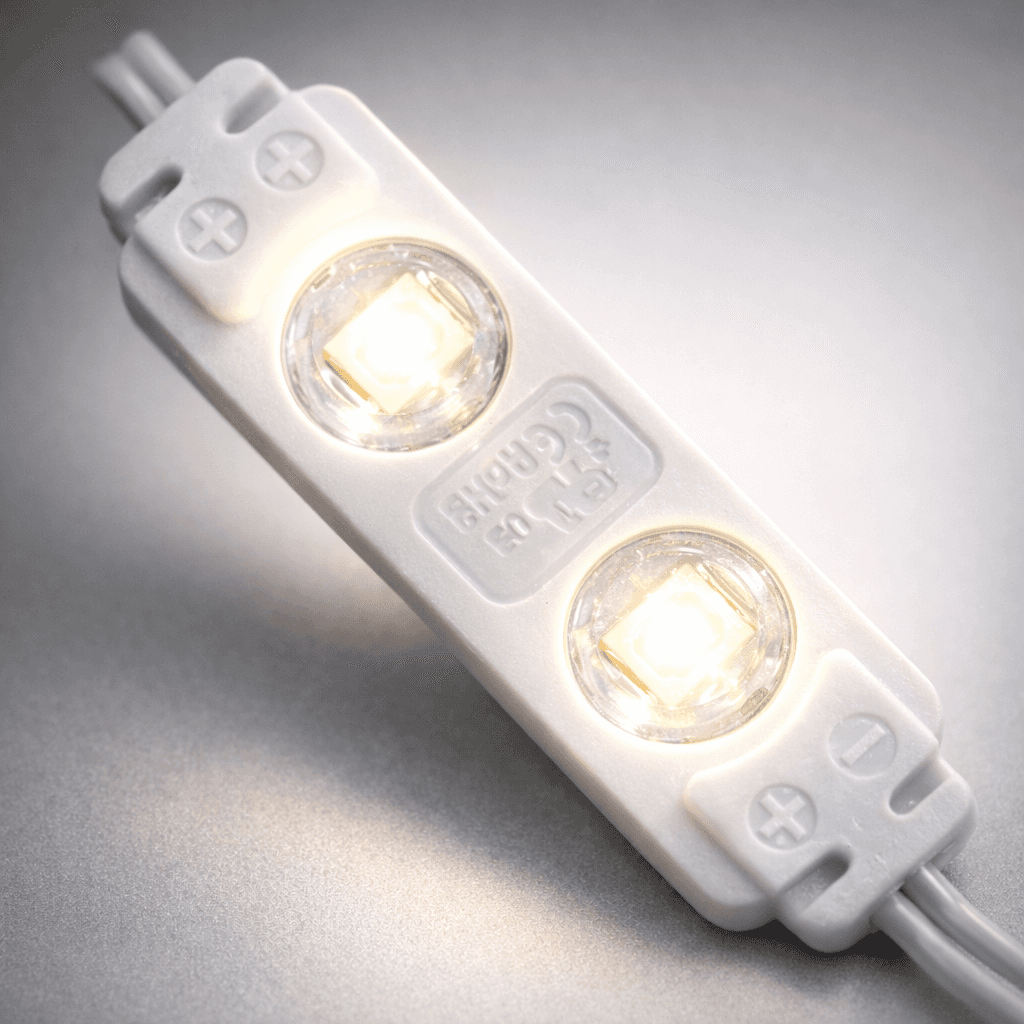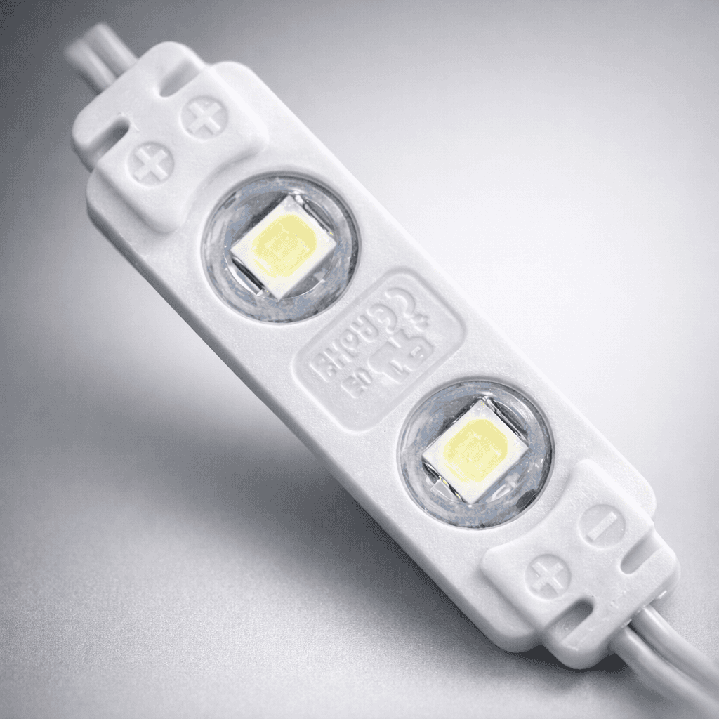 Dwie wydajne diody LED zapewniają optymalną jasność oraz równomierne podświetlenie powierzchni, co sprawia, że moduł doskonale sprawdza się w mniejszych i średnich formach reklamowych.
