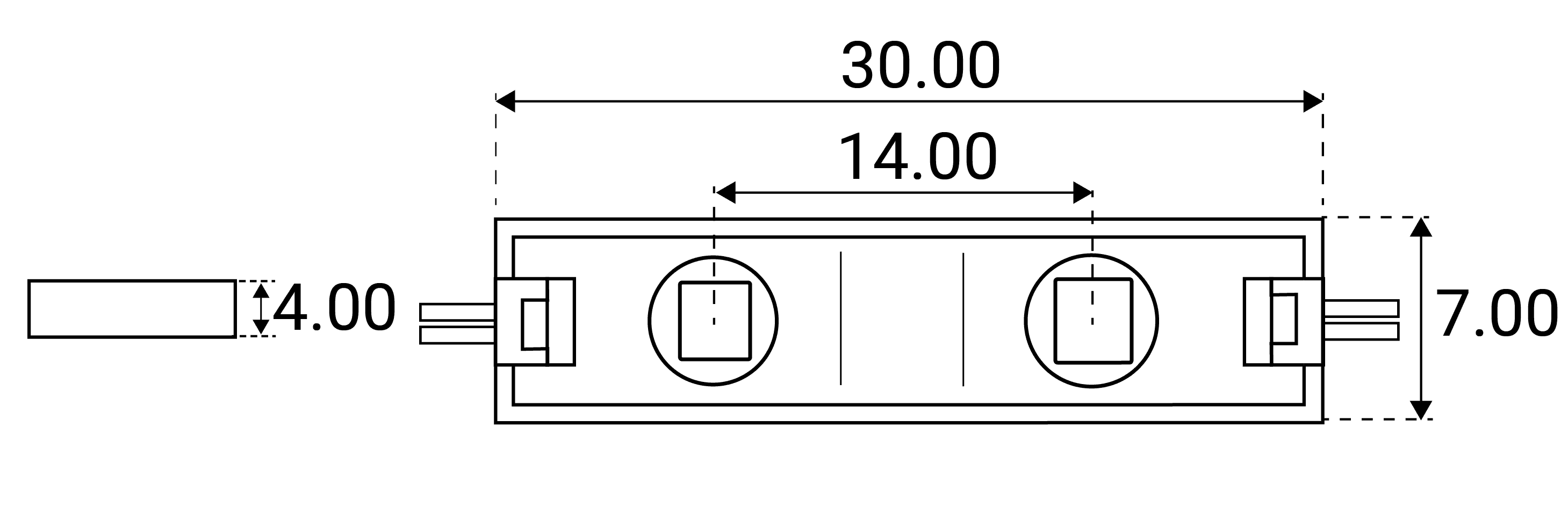 AS-2 to niewielki, dwudiodowy moduł LED zaprojektowany do podświetlania kasetonów oraz elementów reklamowych o ograniczonej głębokości.