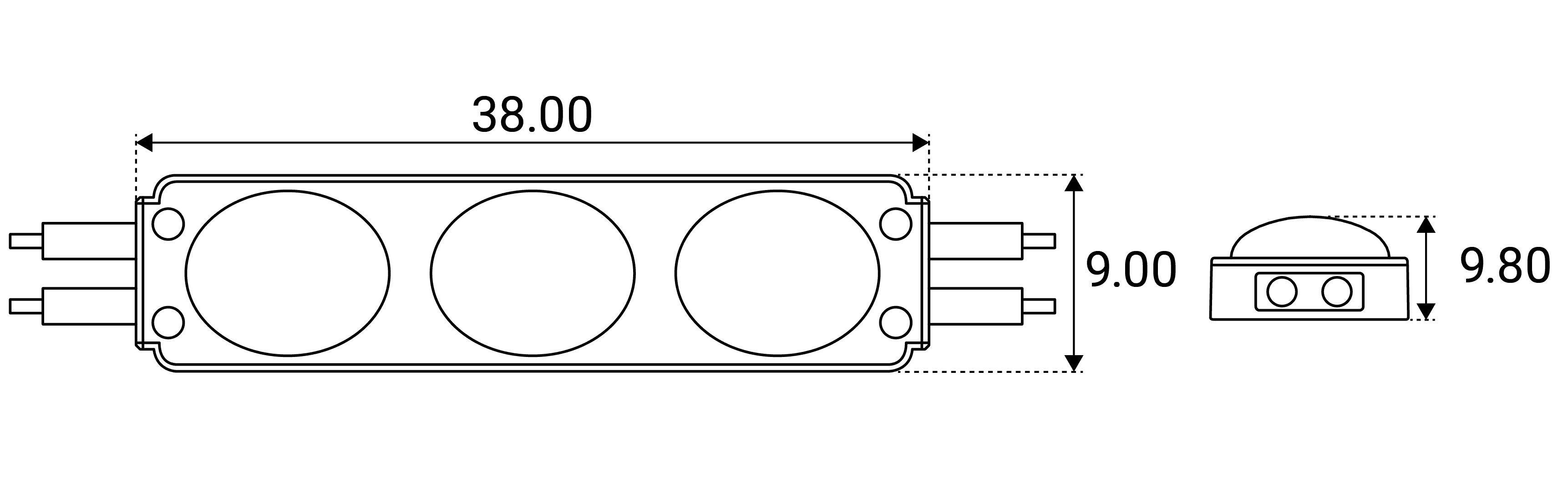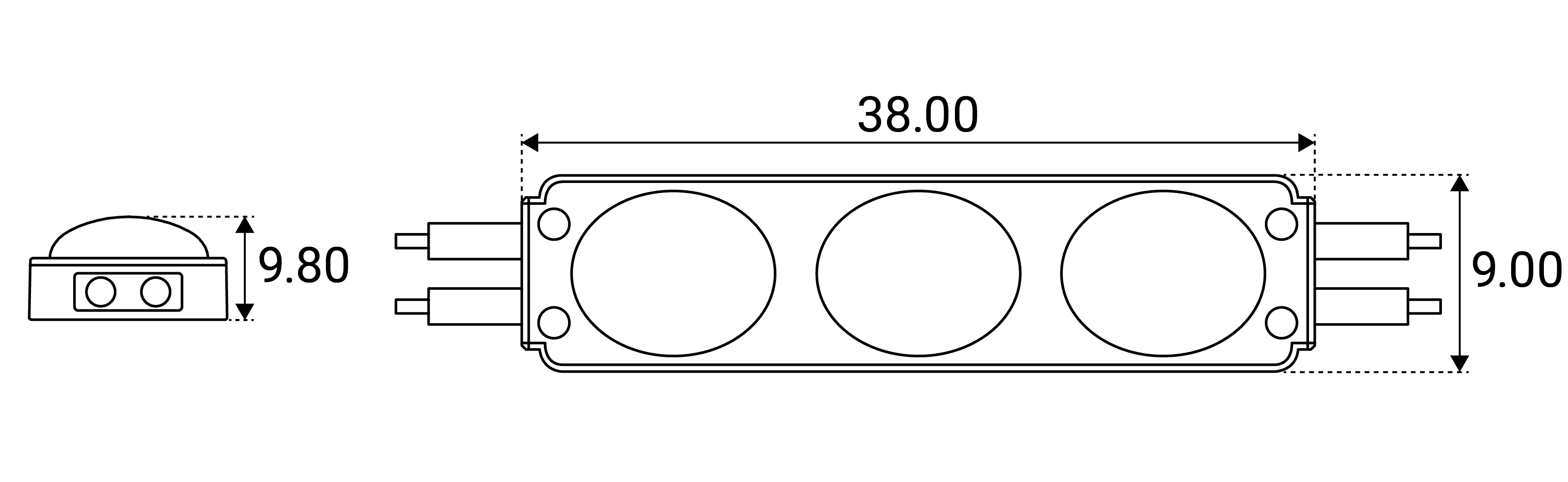 Zastosowanie dwóch diod zwiększa jasność i poprawia pokrycie świetlne, czyniąc moduł idealnym rozwiązaniem dla większych powierzchni w porównaniu do modeli jednodiodowych.