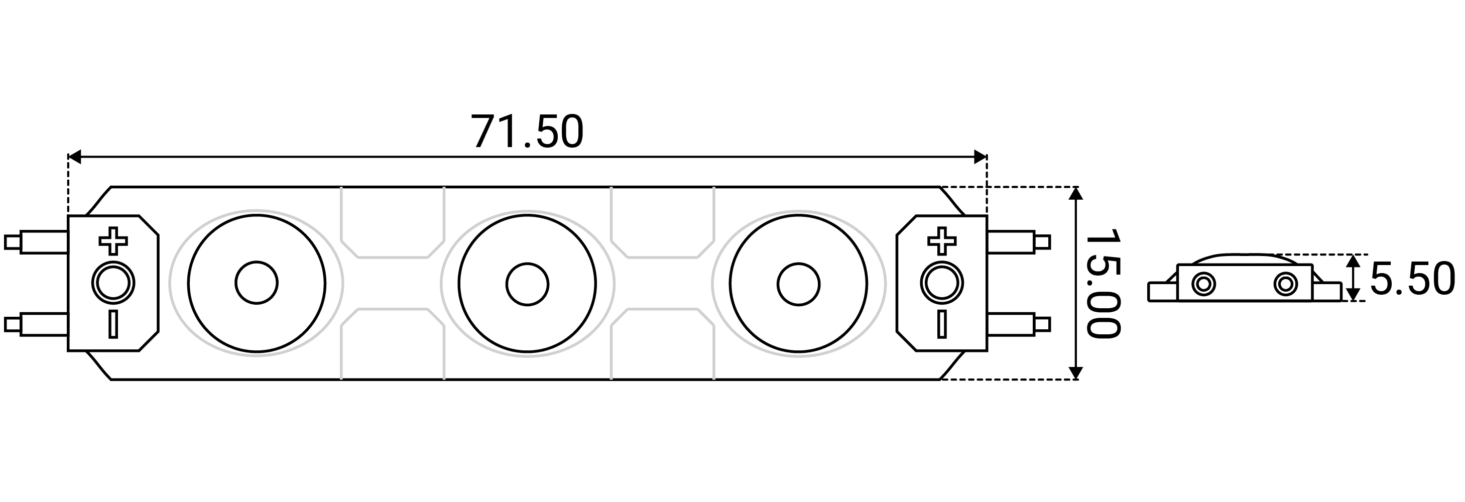 LS-3 L to ulepszona wersja ekonomicznego modułu LED, wyposażona w trzy wydajne diody SMD o zwiększonej mocy. Zaprojektowany do podświetlania form reklamowych o głębokości od 60 do 100 mm.