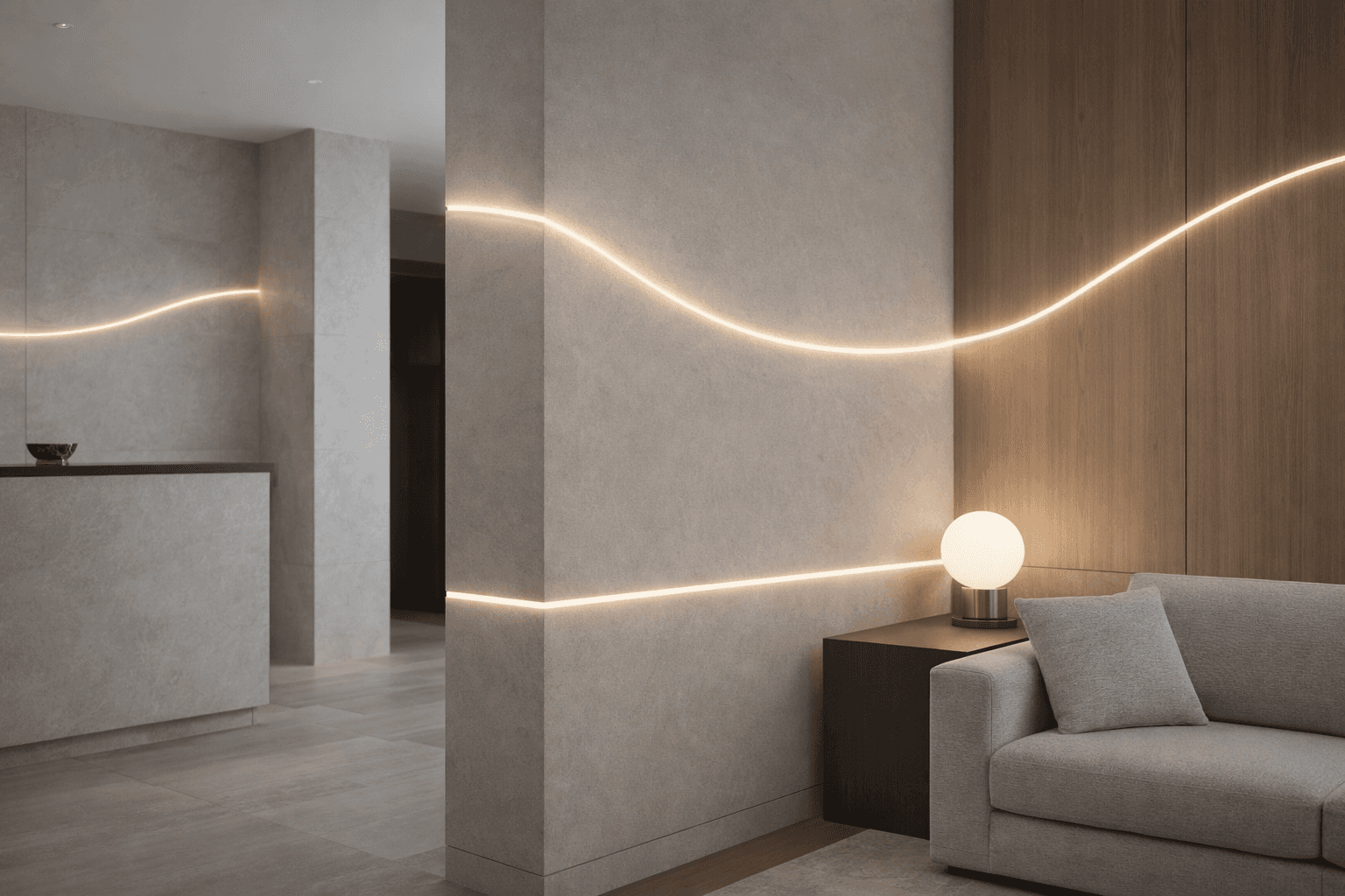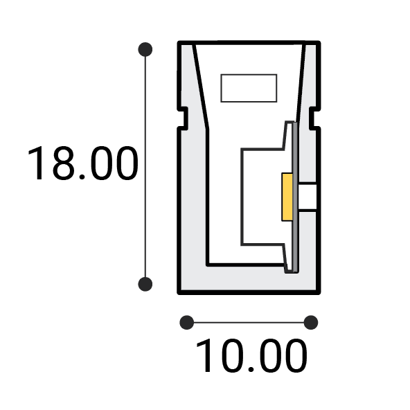 Płaski przekrój umożliwia precyzyjne licowanie neonu z powierzchnią montażu, tworząc spójną, elegancką linię światła bez wystających elementów.