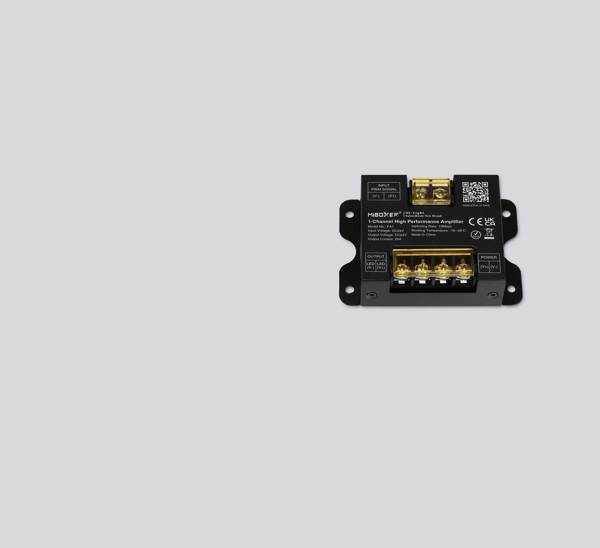 PA1 umożliwia rozbudowę instalacji MONO poprzez bezpieczne zwiększenie długości źródeł światła LED sterowanych jednym kontrolerem.