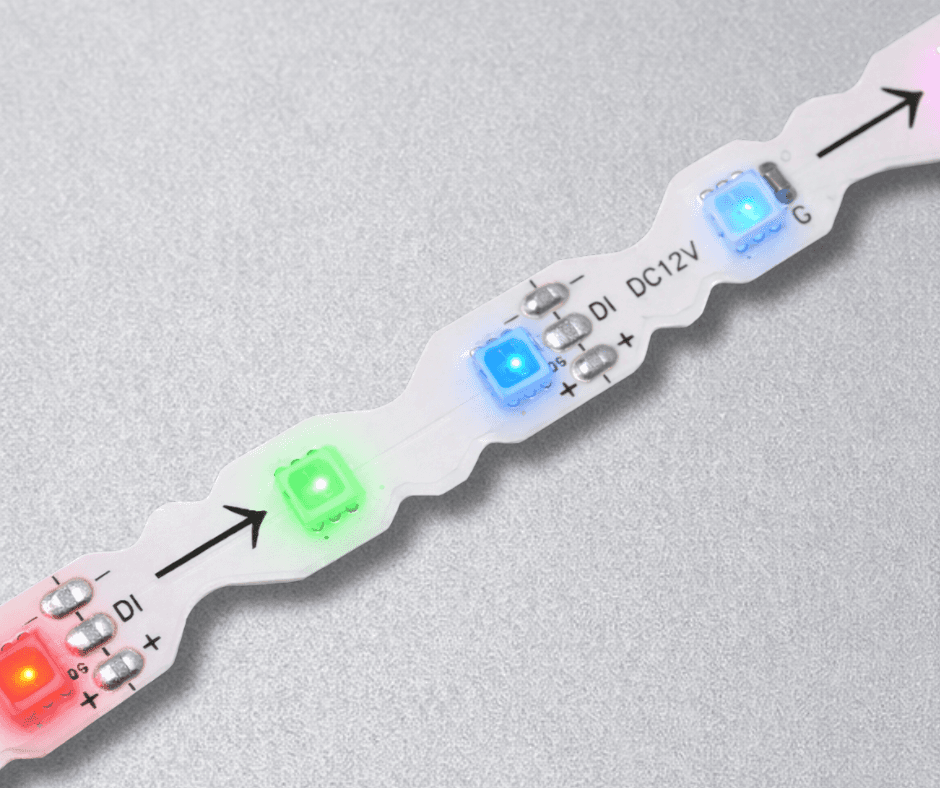 Cyfrowa taśma LED RGB IC umożliwia niezależne sterowanie każdą diodą, tworząc dynamiczne animacje i zaawansowane efekty świetlne. Idealna do nowoczesnych instalacji dekoracyjnych i reklamowych.