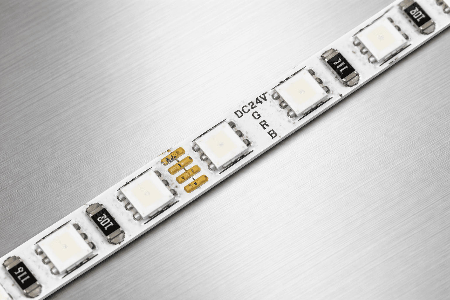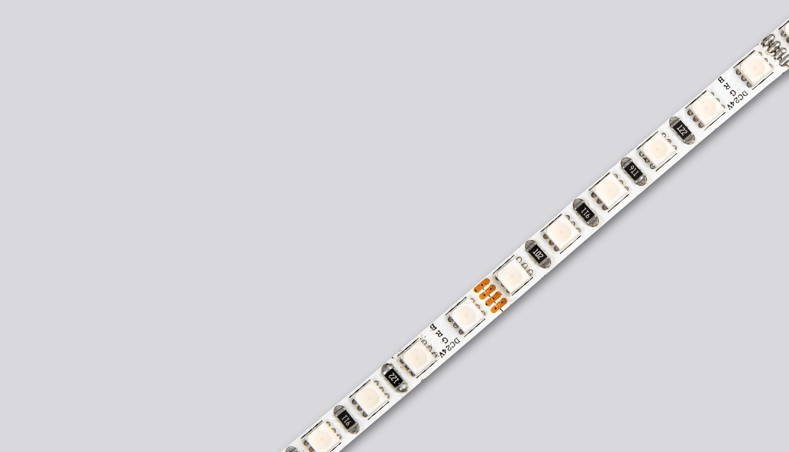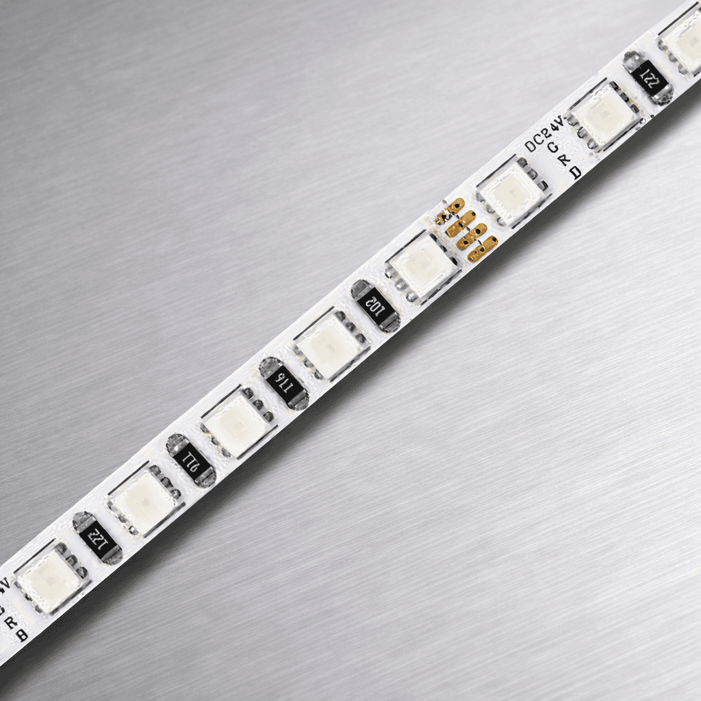 Kompaktowa taśma LED RGB o szerokości zaledwie 5 mm, zaprojektowana do instalacji w bardzo wąskich profilach aluminiowych oraz przestrzeniach wymagających precyzyjnego montażu.